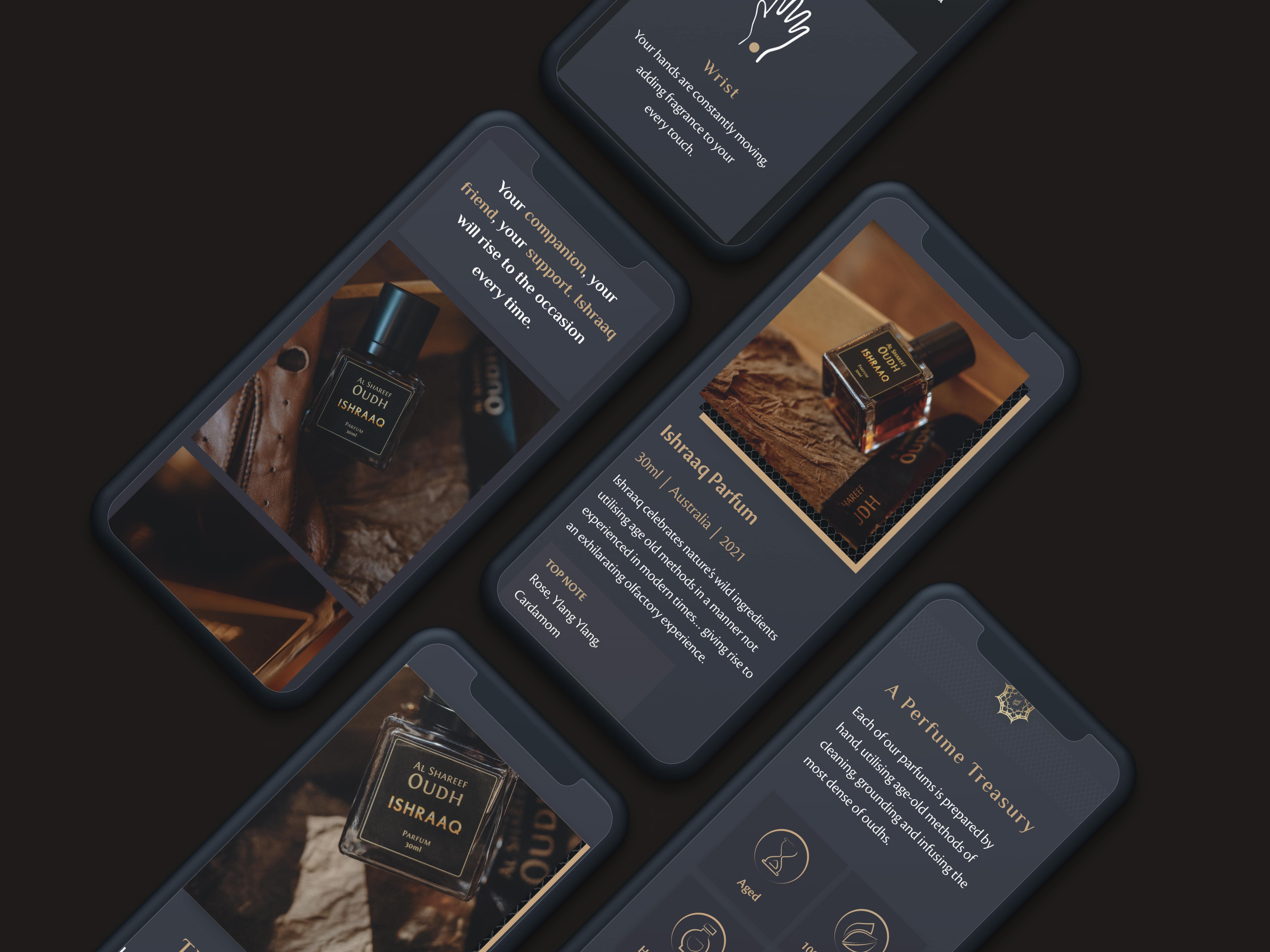 Redesign a new responsive landing page for an artisanal perfume house, known for its traditionally crafted custom Oudhs, Mukhallats and Attars.