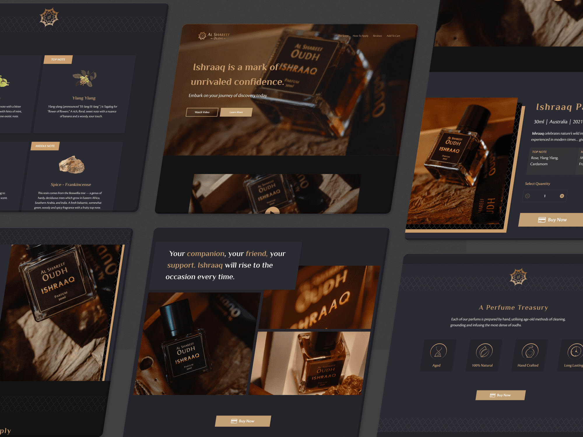 Followed the client-provided typography and color palette to ensure design consistency and alignment with Al Shareef Oudh's brand identity, showcasing an adept application of these elements to enhance visual appeal and user experience in the ecommerce landing page.