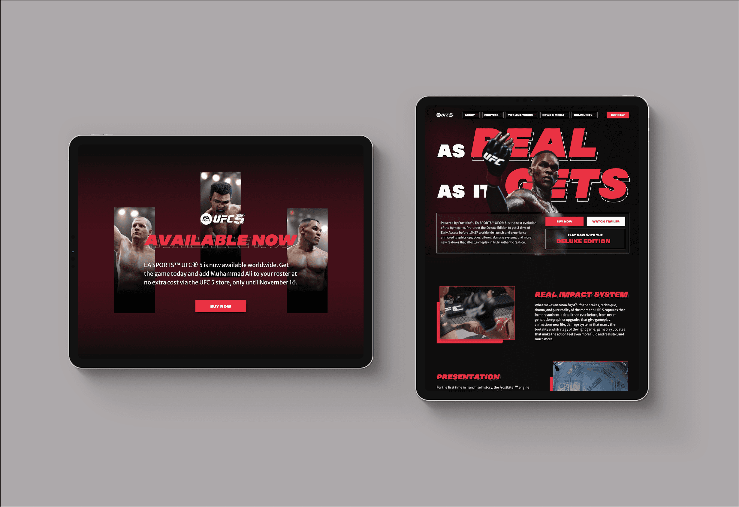 The color scheme remains consistent with our original website, ensuring a seamless visual experience. The typography takes a bold approach, inspired by the strength and power of the UFC Game, enhancing readability and making a lasting impression.