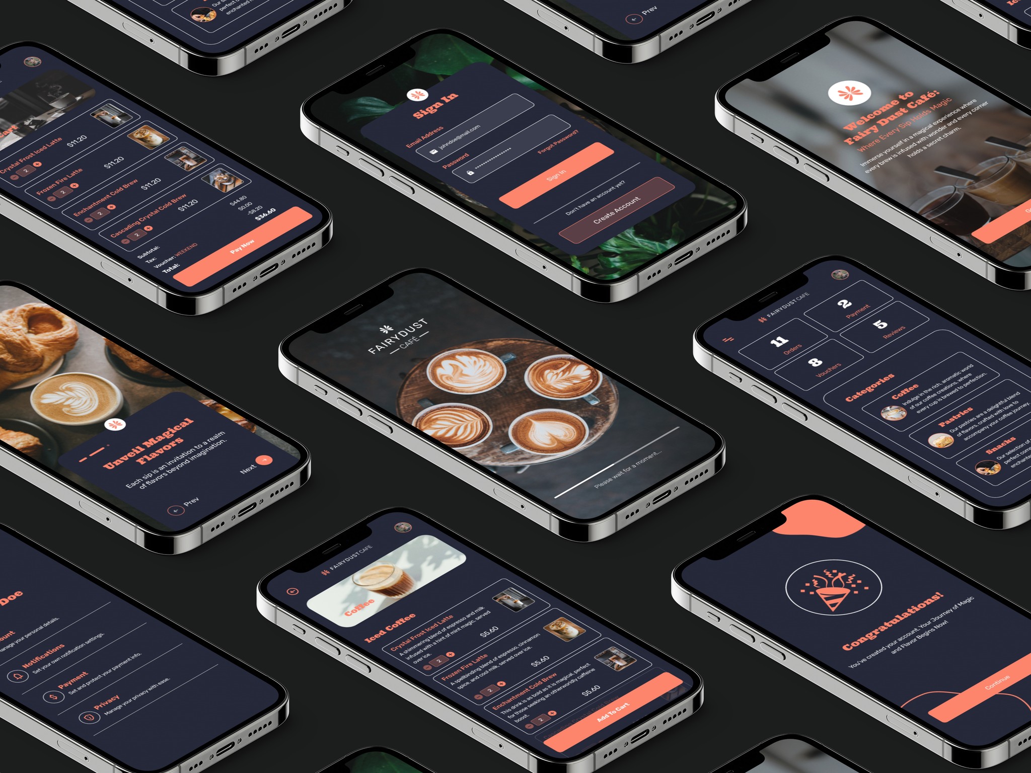 The goal of this mobile app design is to create an intuitive and user-friendly platform that enhances the overall customer experience, offering seamless access to Fairydust Cafe's menu and ensuring efficient online ordering for their patrons.